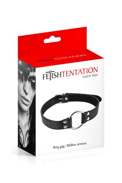 Mordaza ajustable con anillo de metal. El interior de la mordaza es de fieltro para mantener cómodamente la boca abierta.